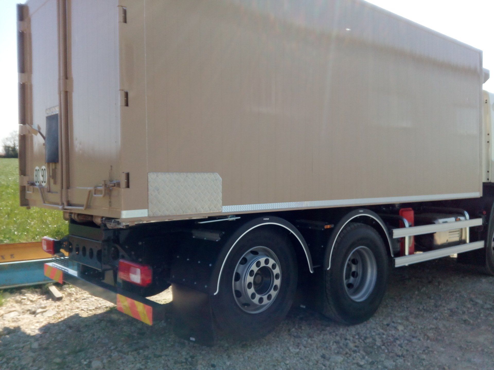 Nous réalisons la carrosserie industrielle : pose de grue de toutes tailles, des plateaux toute grandeur, les tranferts de carrosserie, des portes paille...
